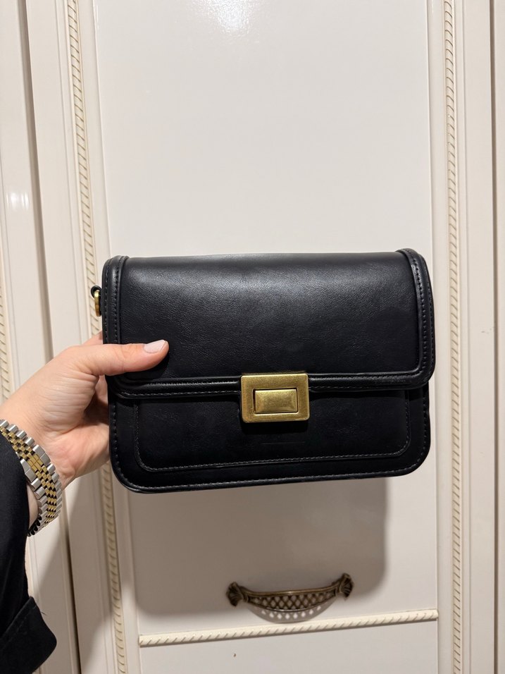 Siyah deri ve tokalı kapaklı, Paris esintili modern klasik tarzda kadın çantası. Günlük kullanıma uygun, şık ve desensiz tasarım. Sadece biraz kapağı çizilmiş bellli olmuyor