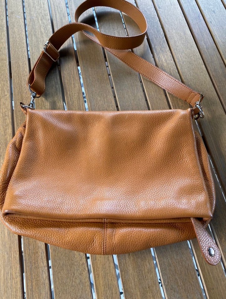Mango inek derisi çapraz kullanıma uygun kullanışlı çanta. İyi durumda iç astarında kalem mürekkep bulaşmış birazcık . 23X35 ölçülerinde