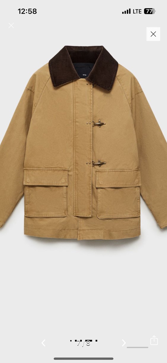 Düğmeli, bej renkte, süet kumaştan yapılmış, notched lapel yakalı kadın ceketi. Uzun kollu, midi boyda, günlük sokak stiline uygun sade tasarım.