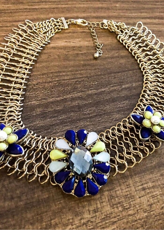 Kuzenim yurtdışından getirdi. Benzeri ispanyol bir model/oyuncunun boynunda (foto2) Pandemiydi kullanamadım. Taşları kaliteli, renkli kristal. Zaman içinde asla kararma yapmadı. Uzunluğu 39 cm. Uzatma zinciriyle 45cm e kadar kullanılabilir. #vintage #kolye #chooker #mango