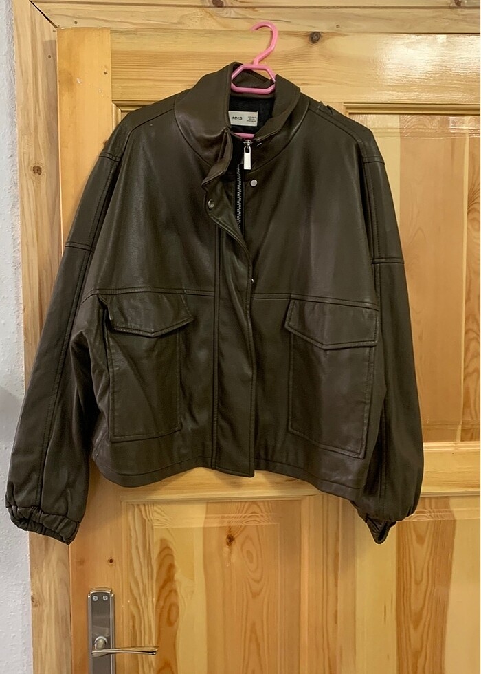 Görülen yerleri defoludur. Tamir edilip kullanılabilir. Haki yeşili deri ceket.