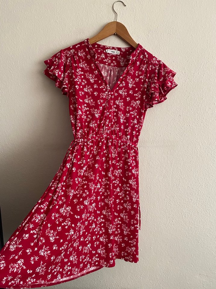 Mango Marka desenli elbise.Sıfırdan farksız durumdadır. İki kol altı arası 44 cm, omuzdan boyu 85 cm.