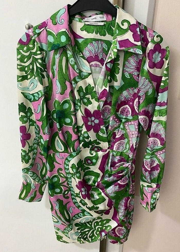 Mango marka desenli saten elbise xs beden