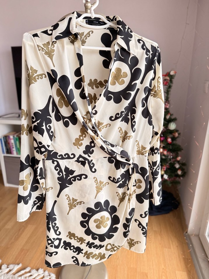 Mango markaya ait, desenli ve saten dokulu kruvaze yaka elbise. Akıcı saten kumaşı sayesinde zarif ve feminen bir duruş sunar. Kruvaze kesimi bel hattını güzel şekilde vurgular. Uzun kol ve mini boy formu ile hem şık hem iddialı bir modeldir. L bedendir. Özenle ve temiz kullanılmıştır, deformasyon yoktur. Özel davetlerde, akşam yemeklerinde ve şık kombinlerde rahatlıkla tercih edilebilir. Dolap sadeleştirme amaçlı satıyorum. 24 saat içinde kargoya verilir. Detay foto veya ölçü bilgisi için mesaj atabilirsiniz.