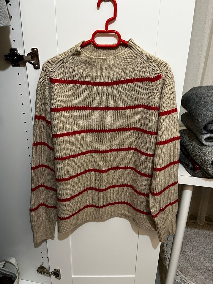 Mango dik yaka Çizgili Kahverengi Kadın Yün Kazak