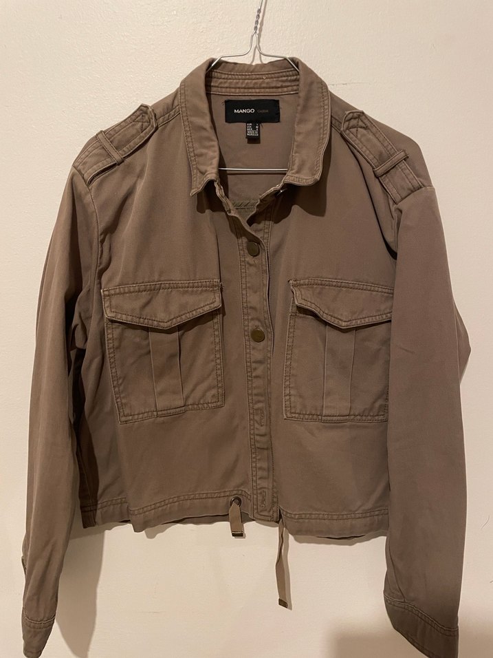 Bej renkli keten ceket, düğmeli ön, uzun kollu ve rahat kesimlidir. Notlu yaka ve iki ön cebi vardır. Günlük kullanım için uygundur.