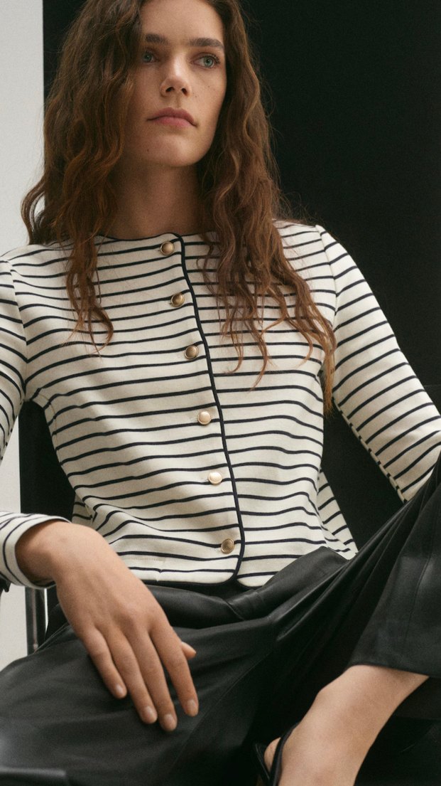 Mango Düğmeli Çizgili Örgü Hırka