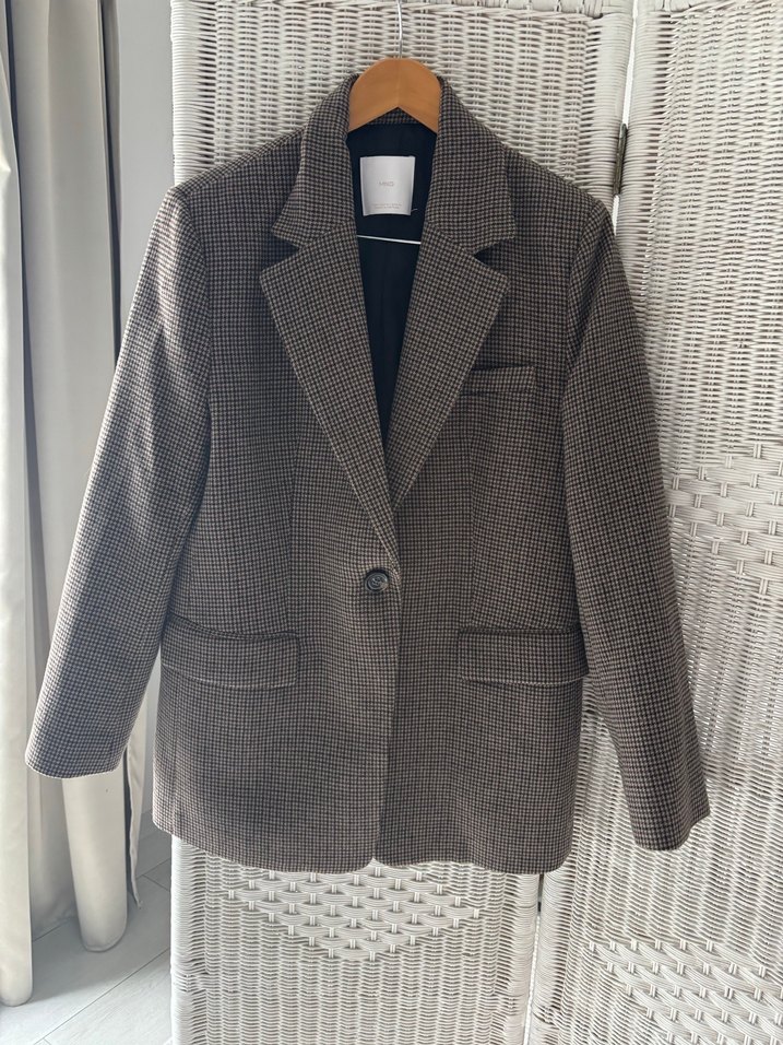 Mango Düğmeli Kahverengi Ekose Kadın Blazer Ceket