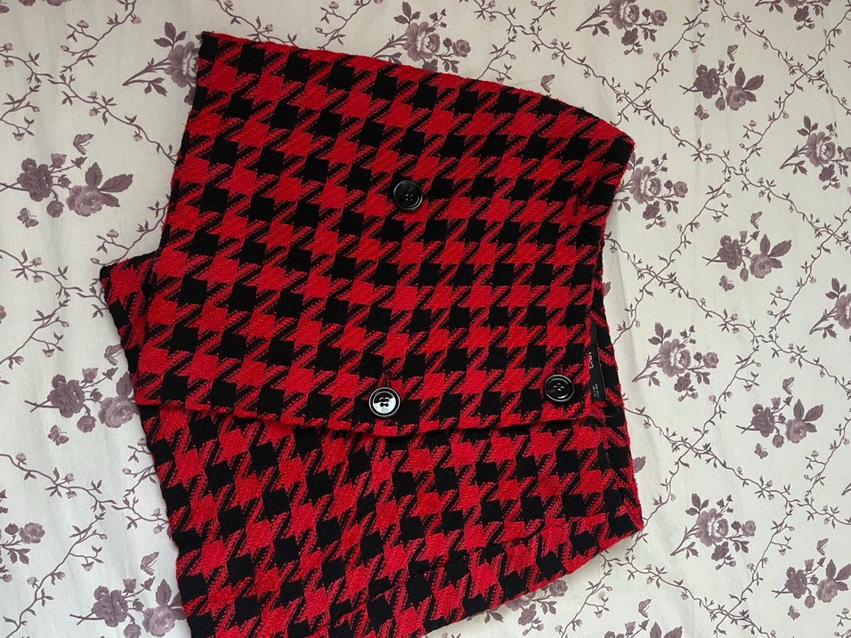 Mango Düğmeli Kırmızı Desenli Midi Mini Etek