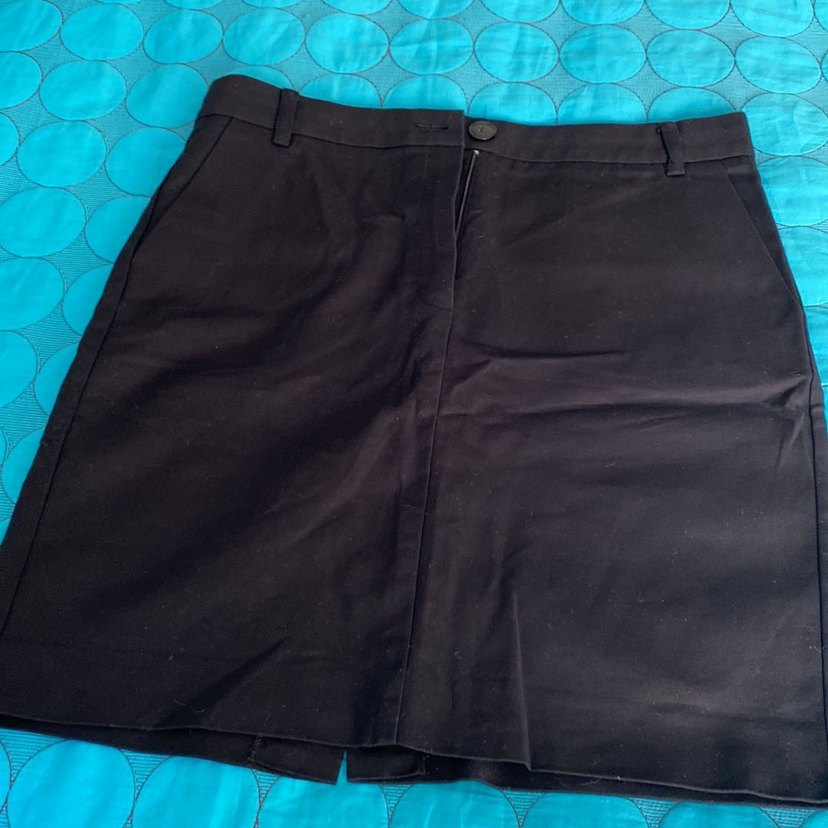 Düğmeli, siyah midi hamile eteği, rahat kesime sahiptir. Pürüzsüz sentetik kumaştan üretilmiş olup ofis ve günlük kullanım için uygundur.
