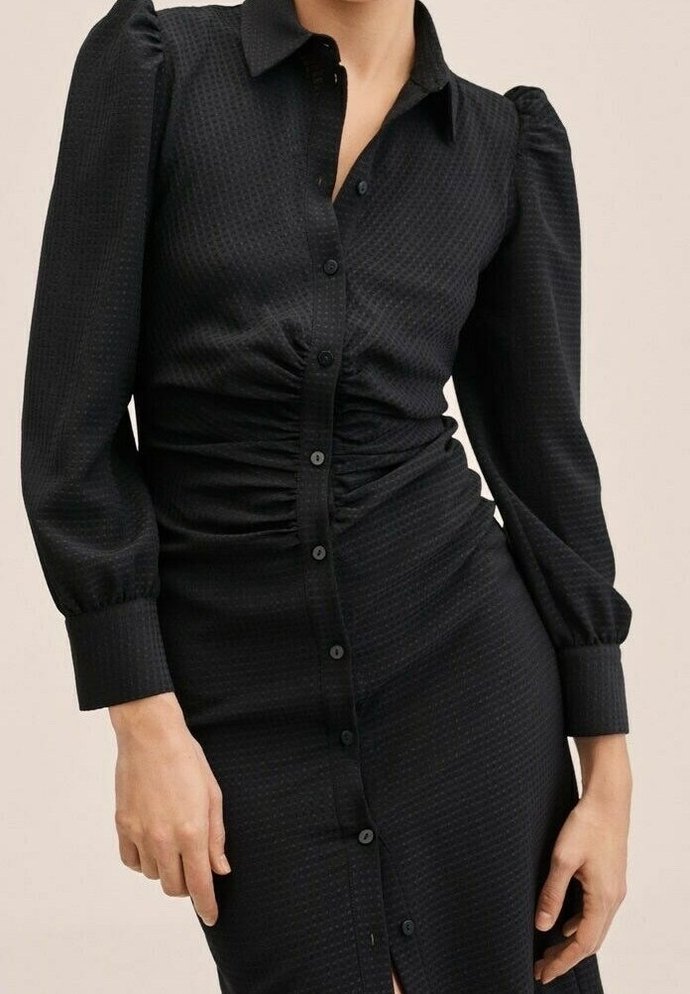 Mango Düğmeli Siyah Uzun Kollu Ofis Elbisesi slim kalem