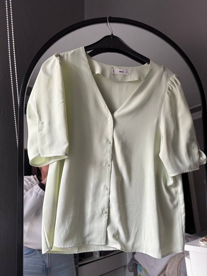 Mango Düğmeli V Yaka Kadın Beyaz Bluz