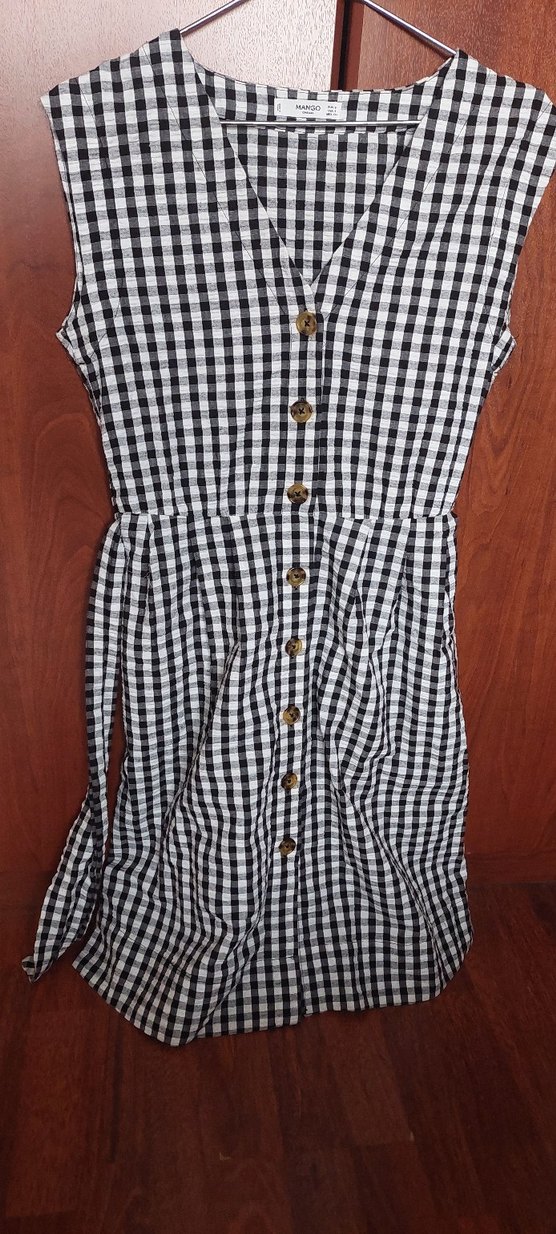 Mango düğmeli V Yakalı Kareli Midi Elbise