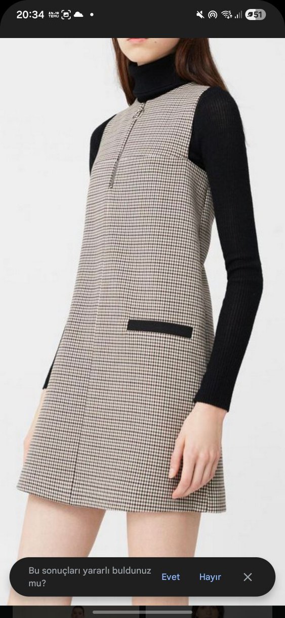 Ekose desenli, midi uzunluğunda triko elbise. Günlük kullanım için rahat kesim ve çağdaş Paris tarzı sunar.