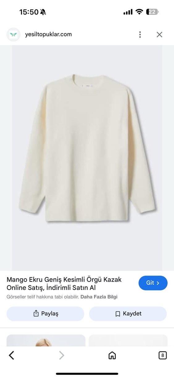Mango Ekru Geniş Kesimli Örgü Kazak