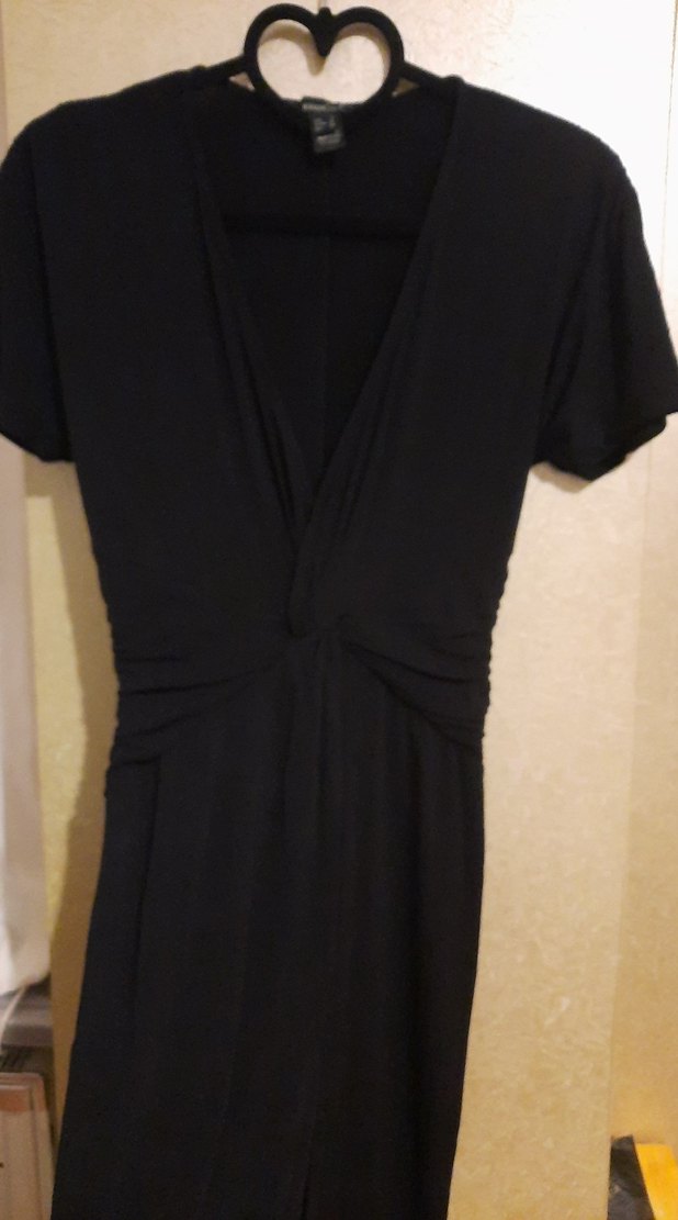 Siyah, açık V yakalı bu midi elbise, kısa kollu ve ince, ipeksi dokulu kumaştan yapılmıştır. Minimalist gotik tarzıyla ofis için uygundur. Son derece zarif ve şıktır. En 34 Boy 90 cm dir