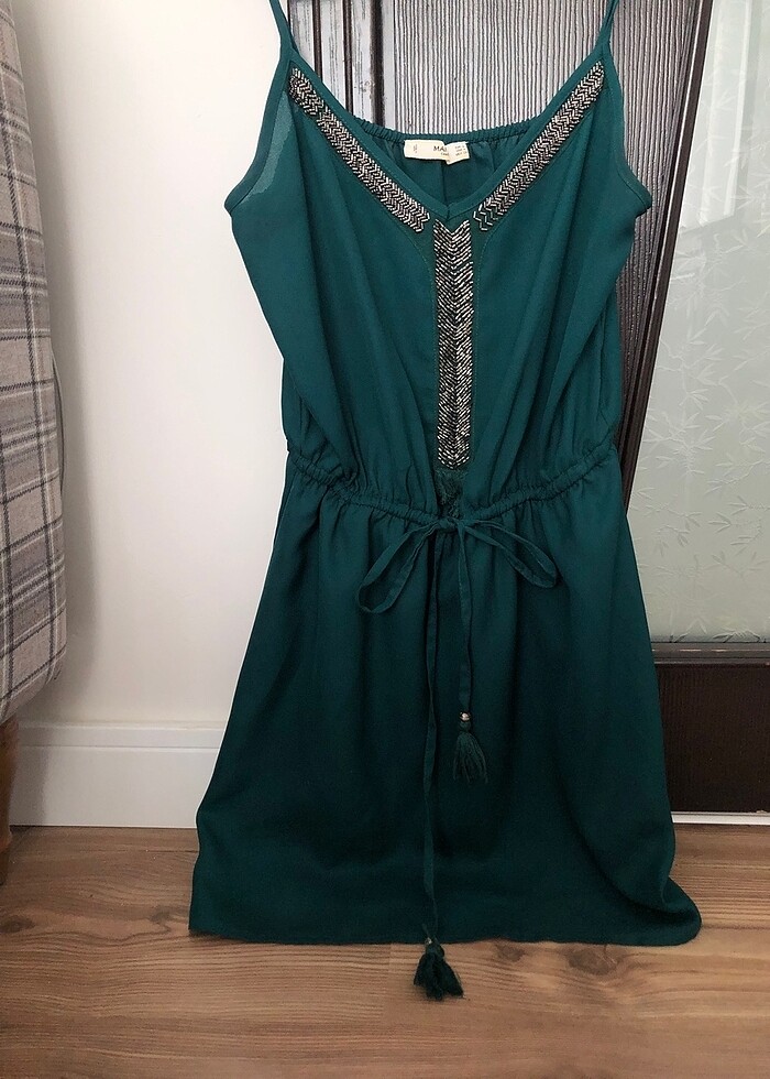 Mango s beden kısa elbise, boncuklarda fotoğrafta göründüğü gibi eksik var.