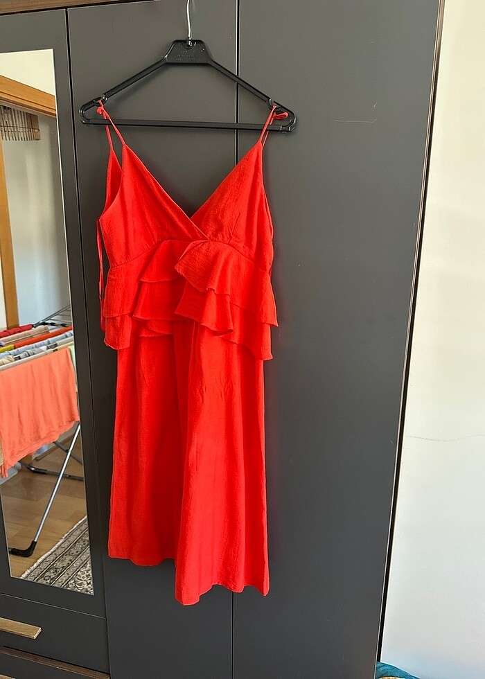 Bir kez giyilmiştir. Narçiçeği rengindedir
