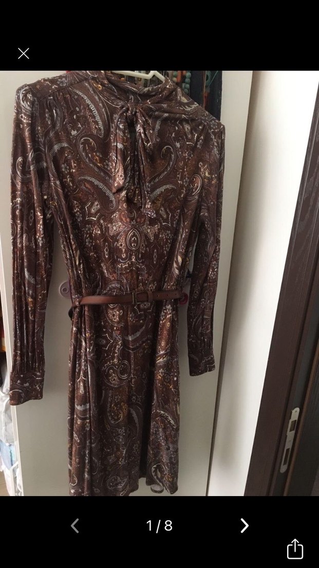 Kahverengi yılan desenli, uzun kollu vintage bohem tarzı, beli kemerli ve vücuda oturan kadın elbisesi.bir defa giyildi ve FİYAT sondur lütfen indirim talep ETMEYİN