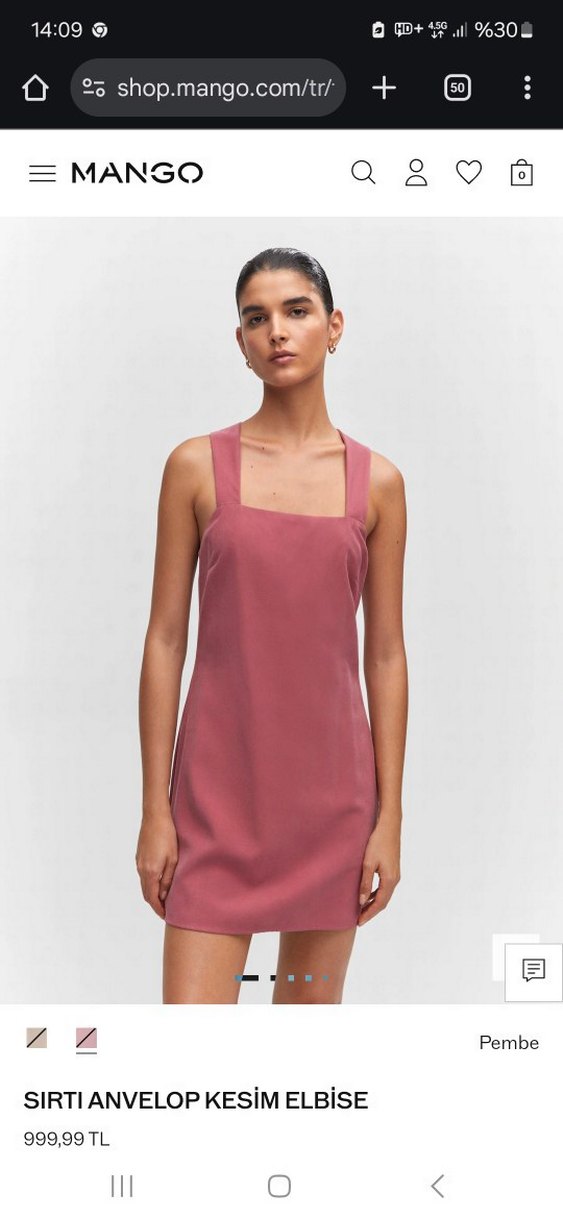 gülkurusu elbise. mango marka. xs beden. hic giyilmedi.