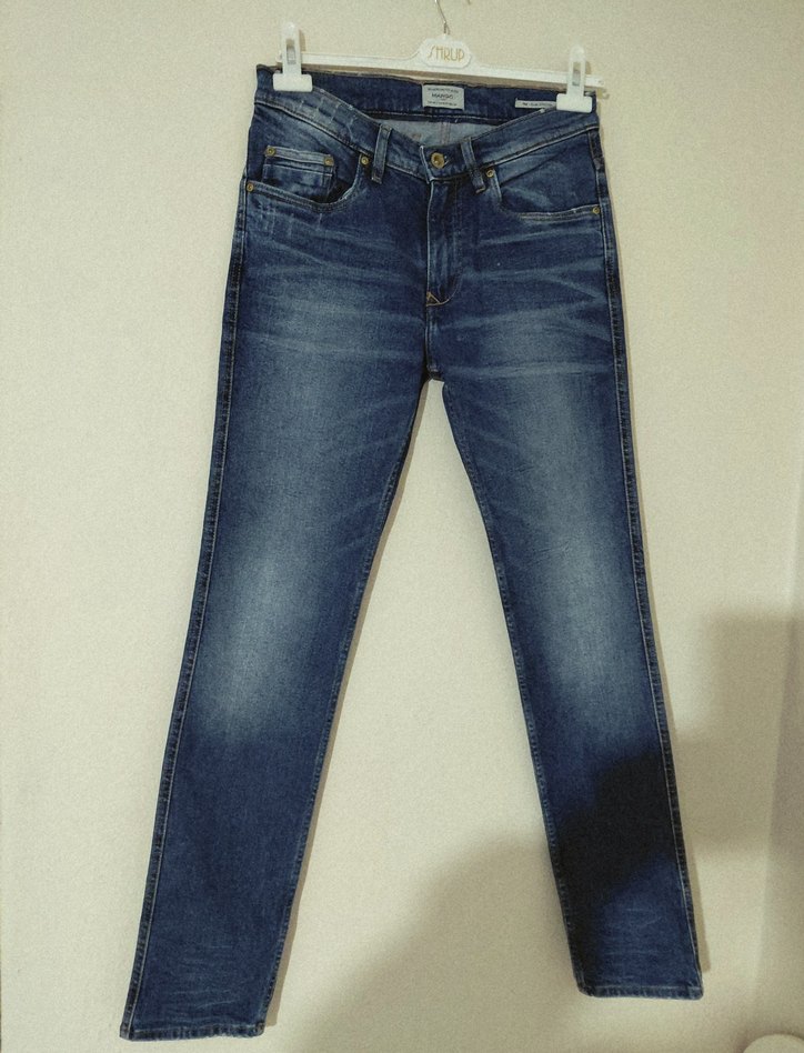 Mango Erkek Lacivert slim strech Denim uzun jean kot Pantolon