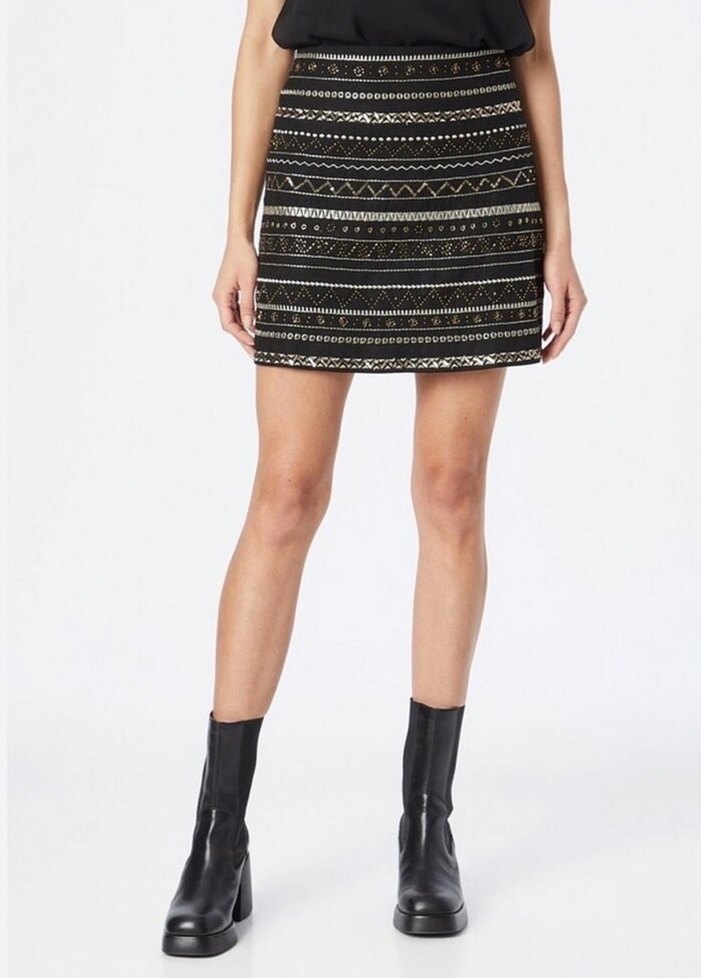 Lacivert beyaz renk ön tarafı boncuk işlemeli kısa etek birkaç defa kullanıldı