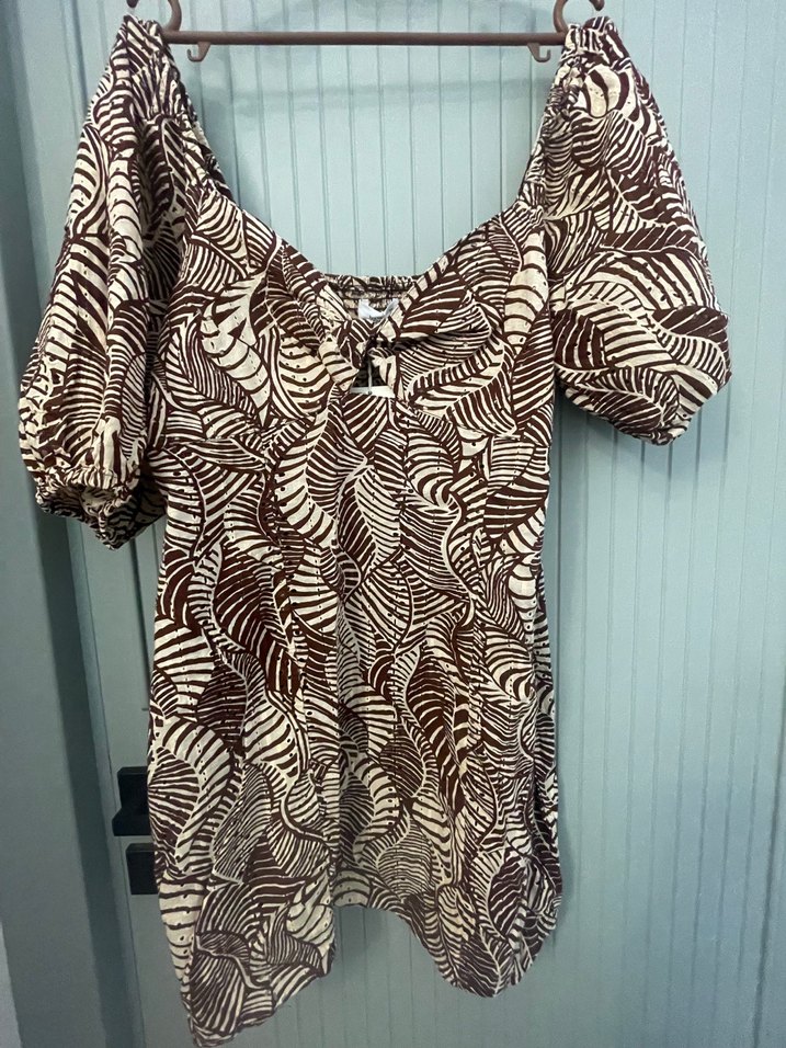 Bohem tarzda,balon kol kayık yaka ve koyu kahverengi zebra desenli, yumuşak fisto astarlı kumaştan yapılmıştır. Günlük kullanım için uygun.