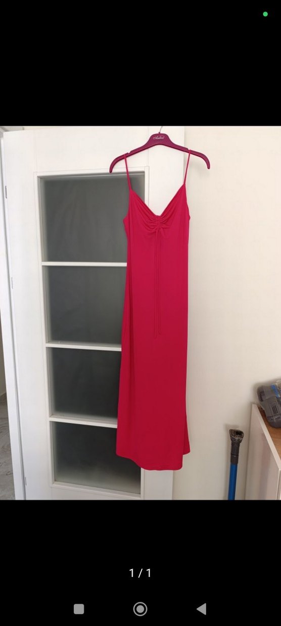 Askılı, uzun ve v yakalı bu pembe elbise, drapeli detay ve oturan kesimle dikkat çeker. İnce ve parlak kumaştan, romantik geceler için ideal.sayili kullanıldı