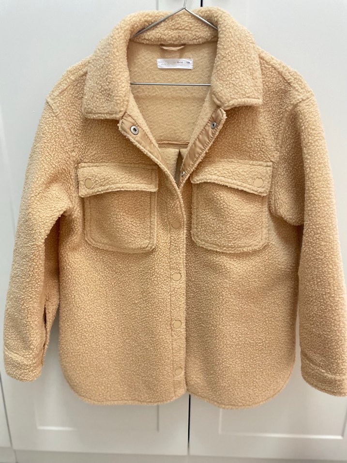Bej renkte, düğmeli ve cepli, uzun kollu, rahat kesim midi kadın kaban. Yumuşak ve sıcak kumaştan üretilmiştir, gündelik sokak stili için uygundur.