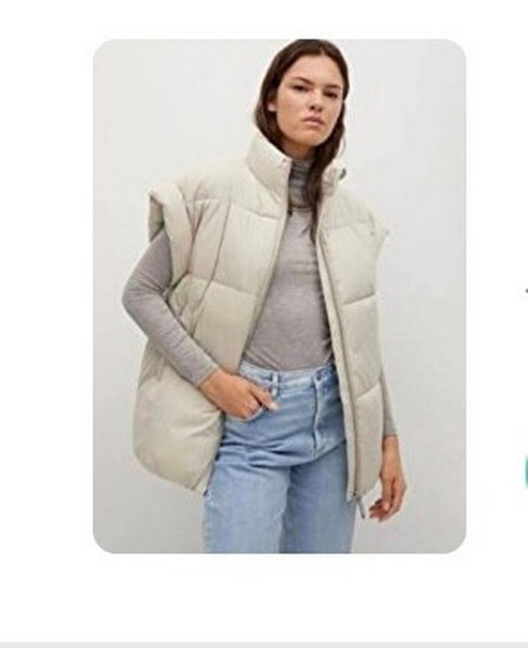 Yeni kullanılmadı.Gri bej renkte, yüksek yakalı ve bol kesim kadın midi şişme yelek. Yumuşak ve sıcak kumaştan, günlük rahat sokak stili için idealdir.