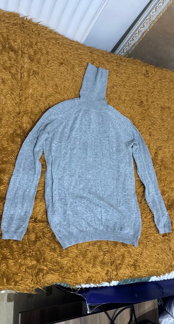 Mango Gri renkte, boğazlı ve uzun kollu örgü kazak, rahat kesimi ve normal boyu ile günlük sokak tarzına uygundur.