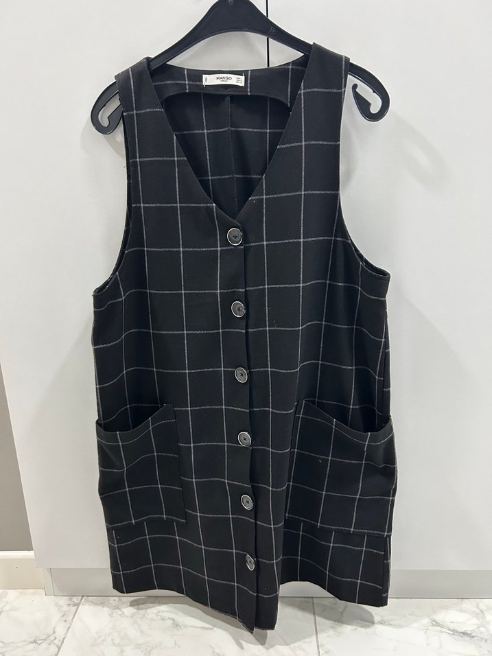 MANGO Gri Kareli JİLE ELBİSE