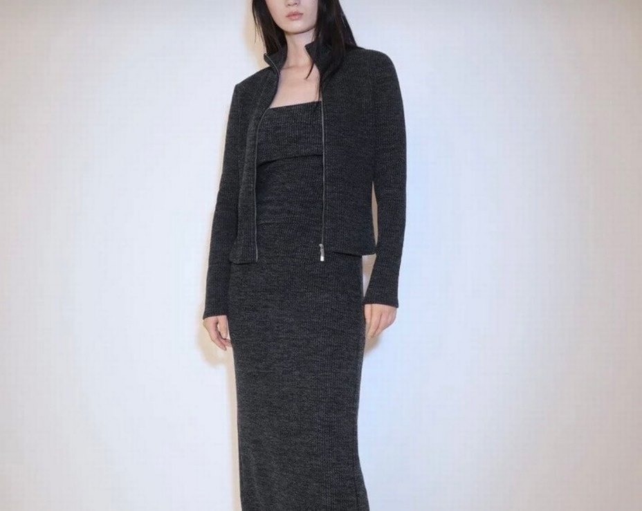 Mango gri kırçıllı straplez bluz ve ceketi