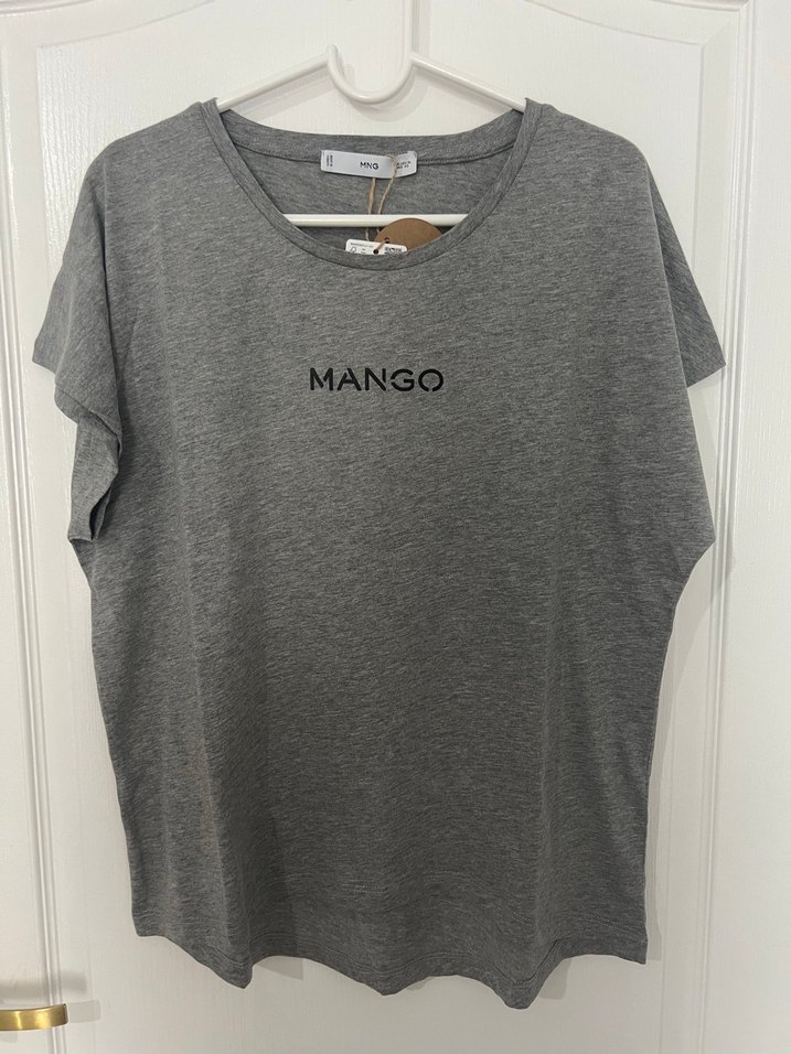 Gri renkli, kısa kollu ve yuvarlak yakalı Mango kadın tişörtü, rahat kesimi ve yumuşak pamuklu kumaşıyla günlük kullanım için uygundur. Üzerinde kabartma baskılı logosu bulunur.