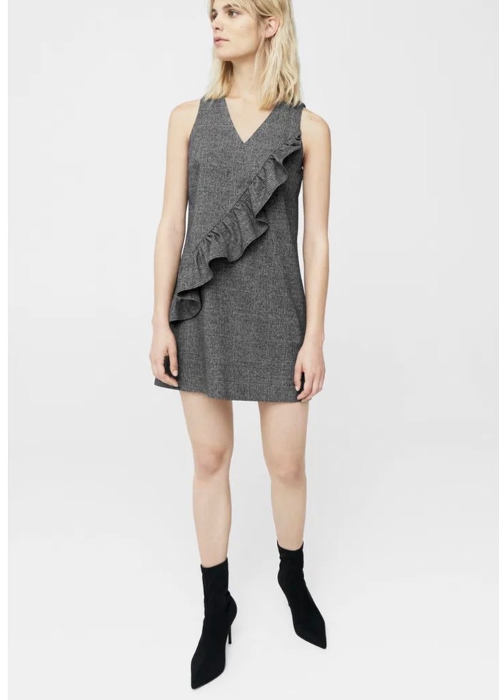 Mango Gri Mini V Yakalı Fırfırlı Elbise