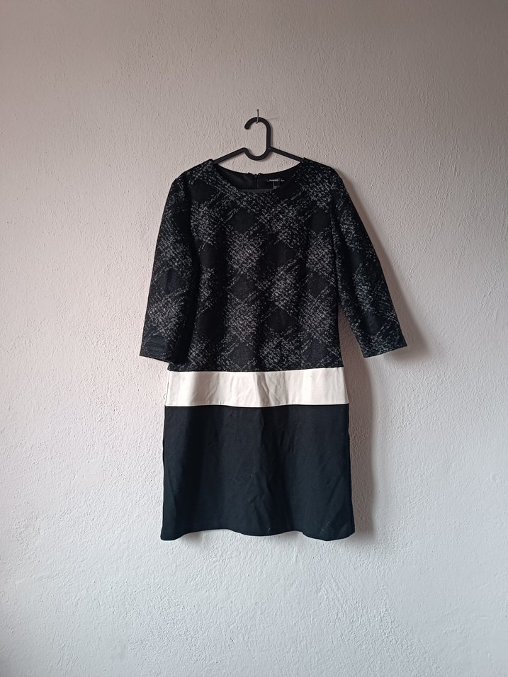 Mango truvakar kollu, bisiklet yaka, yarısı yün yarısı pamuklu kumaştan midi elbise. Gri ve siyah tonlarda, regular fit, ceplidir. M beden. İki koltuk arası genişliği 46 cm boyu 89 cm dir. Ofis giyimi için tercih edebilirsiniz. Arkadan fermuarlıdır. Bu sayfadaki ürünler, ek gelir amaçlı satışta değildir. İkinciel butik satış fiyatlarıdır ve bu sebeple fiyat sondur. Sadece toplu alımlarda indirimden faydalanabilirsiniz. (üç ürün yüzde 5, beş ürün yüzde 15) Aynı gün kargoya verilir. Instagram: @namaste.vintage