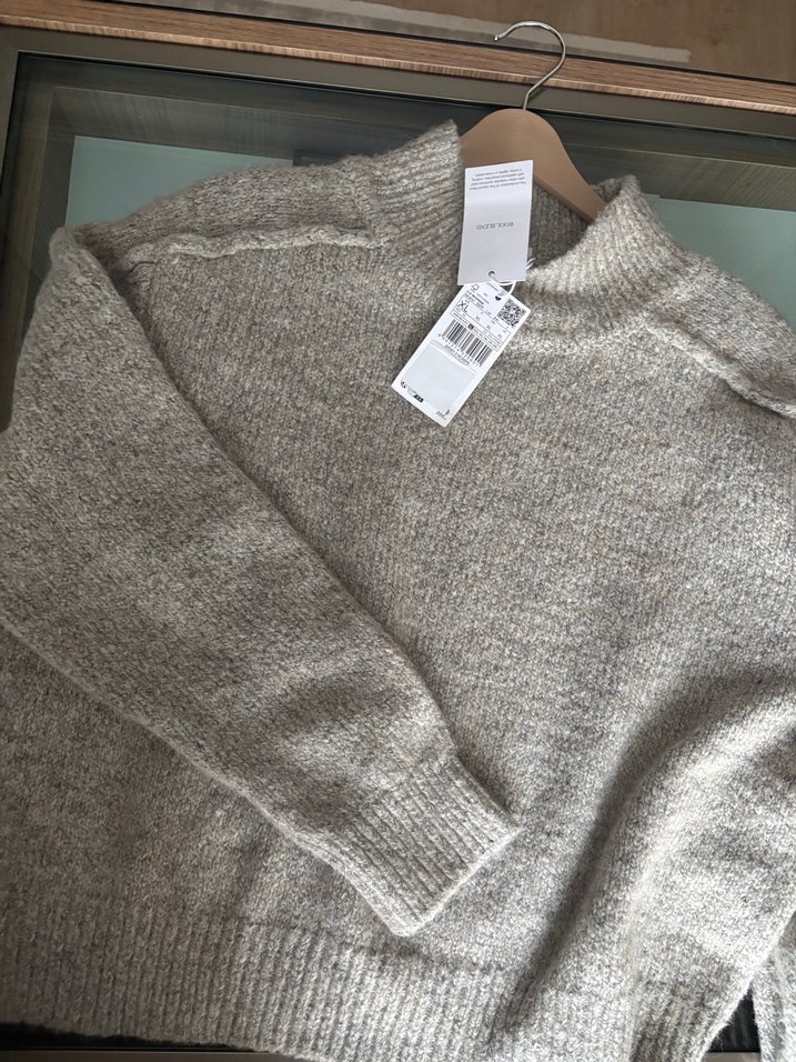 Gri yünden örülmüş, yuvarlak yaka uzun kollu kadın kazak. Rahat kesimi ve normal boyu ile günlük kullanıma uygundur.