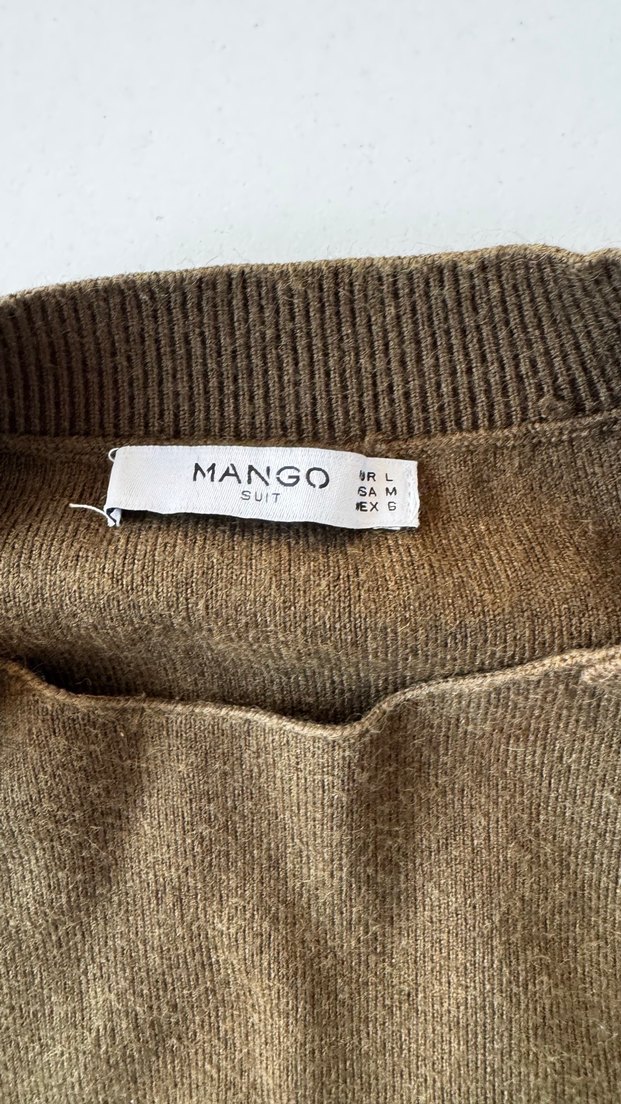 Mango marka haki örgü yün kazak, yuvarlak yaka ve uzun kollu. Rahat kesim ve normal boyda, günlük kullanım için uygun. Yeni sadece 1 kez kullanıldı
