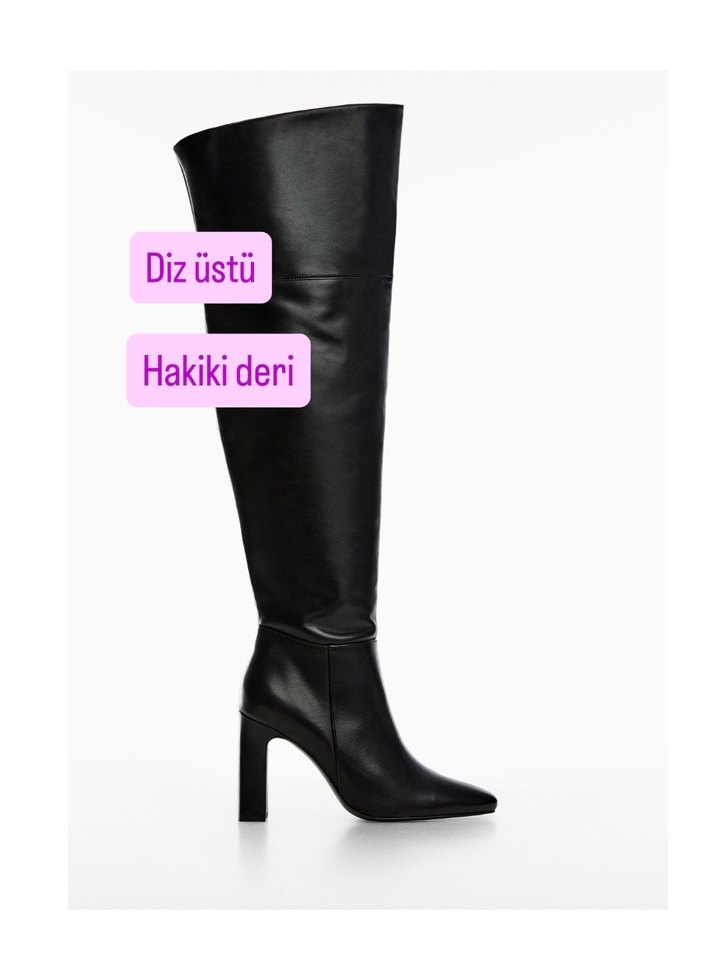 Mango hakiki deri diz üstü çizme. Etiketli sıfır kullanılmadı. Diz üstüne çıkıyor boy ölçüsü fotoğrafta mevcut. Derisi yumuşak çok şık ve rahat bir ürün. Arkadaşlar zaten suni deri çizmeler bile bu fiyatlara satılıyor gerçek deri modellere göre fiyatı uygun tutuyorum bu kalitede model bulmak çok zor. Uygun fiyata vereceğim. Tam kalıptır kusuru yoktur yepyeni