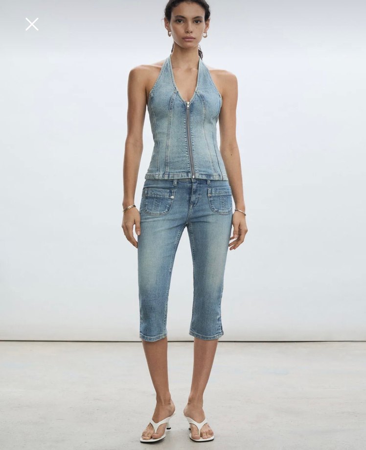 Mango halter yaka denim üst
