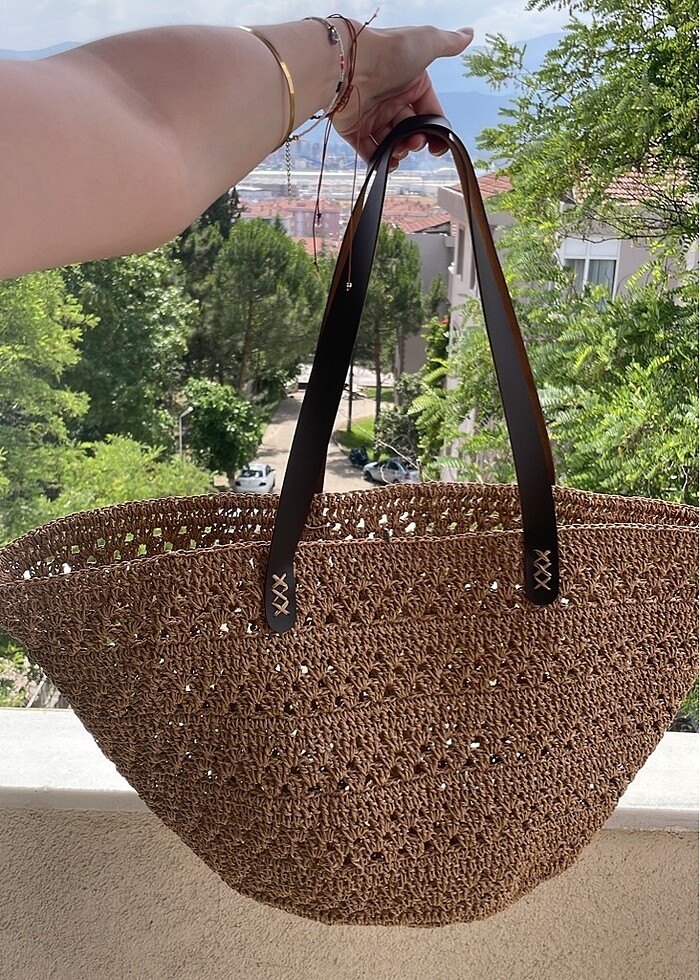 Ürün el emeğidir. Mango model büyük boy plaj çantasıdır. Arzuya göre günlük veya alışveriş çantası olarak da kullanılabilir