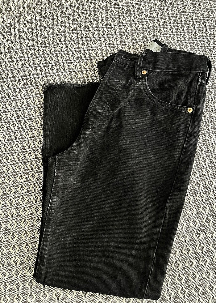 Mango siyah jean, belden pens atılmıştır. İsteyen tadilatla belini açtırabilir. Net koyu siyah değildir, 3. Görselde olduğu gibi içinde beyazları mevcuttur.