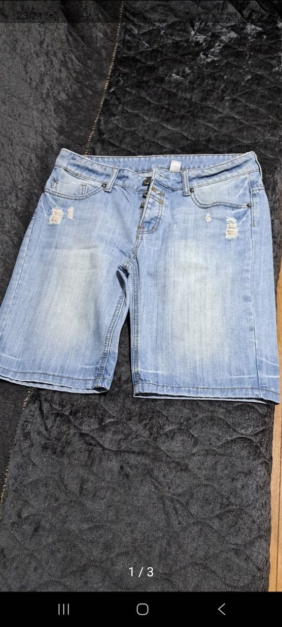 Mango marka, 38 beden, düğmeli, bol kesim jean şort. Kısa boy, gri-mavi renk ve hafif yıpratma detaylarıyla günlük sokak stiline uygun. Az kullanılmış olup temiz ve sağlamdır.