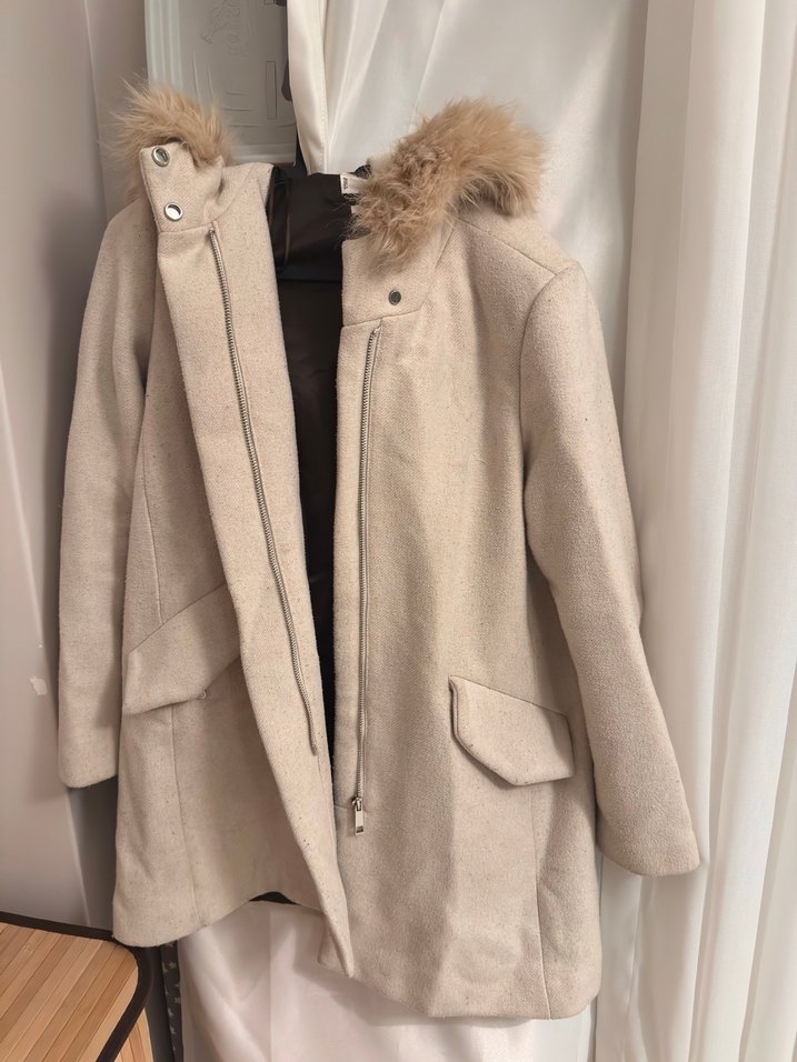 Kapişonundaki kürkü çıkmaktadır resimde ekledim çok kullanışlı karda bile giyilir kilo aldığım için olmuyor sadece dış yüzeyinde hafif tüyler var makinenin elde yıkama bölümünde yıkandı sadece kuru temizlemede çok temiz olur Mango XS beden ancak kalıbı büyük alta doğru bol olduğu için örtüyor ve rahat oluyor.