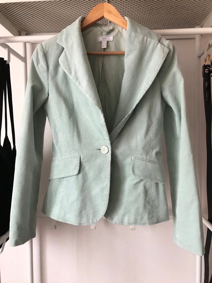 Çok şık ve kaliteli bir ürün. Orijinal mango. İçi tamamen pamuk ve asla terletmez. Dışı uçuk mavi renginde, kadife kumaşından. Tek kusuru iç astarının koltuk altının rengi hafif solmuş, ama zaten giyince görünmüyor. Başka kusuru yok.