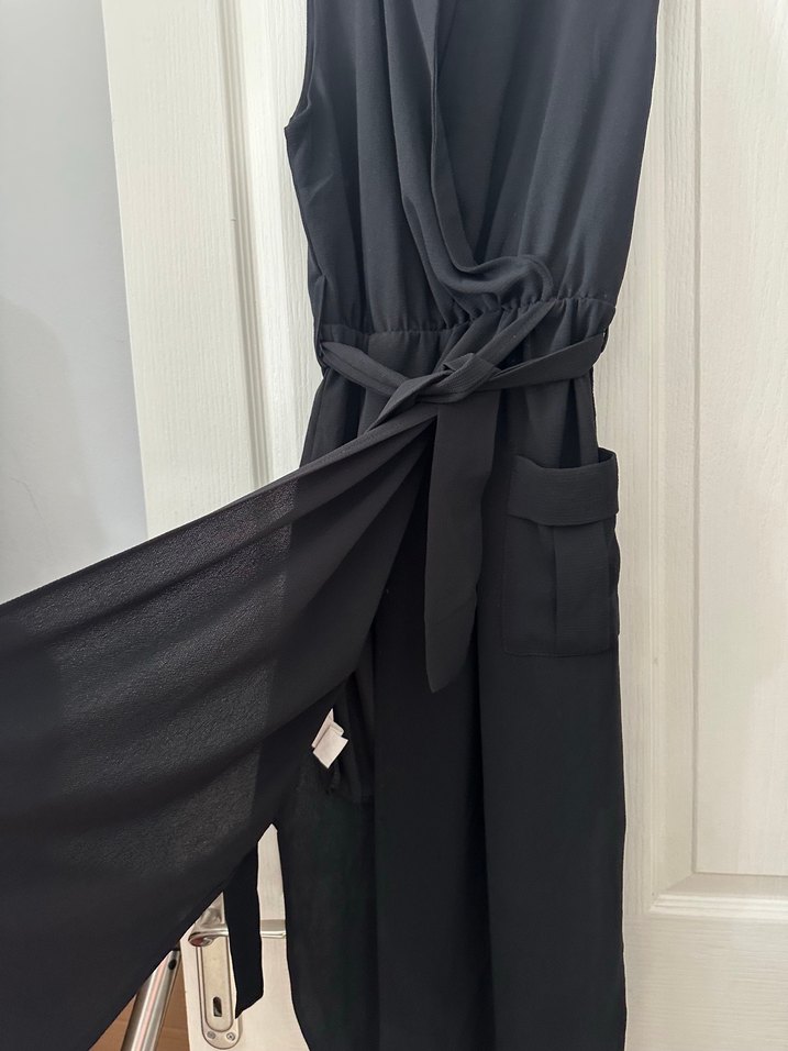 Markası temsilidir.m beden yazıyor ama s beden için uygundur. Beli kuşaklı ve yakası asimetrik kesimdir. İnternetten almıştım.küçük geldi.