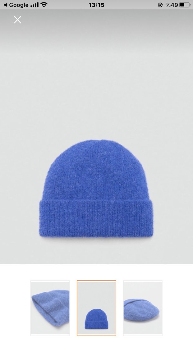 Kadınlar için mavi renkte, örgü ve katlanabilir kenarlı yumuşak dokulu bere. Rahat kullanım için uygundur.yün dokuma olup 1 defa birkaç saat takılmıştır.hiçbir yerde stogu kalmamıştır.