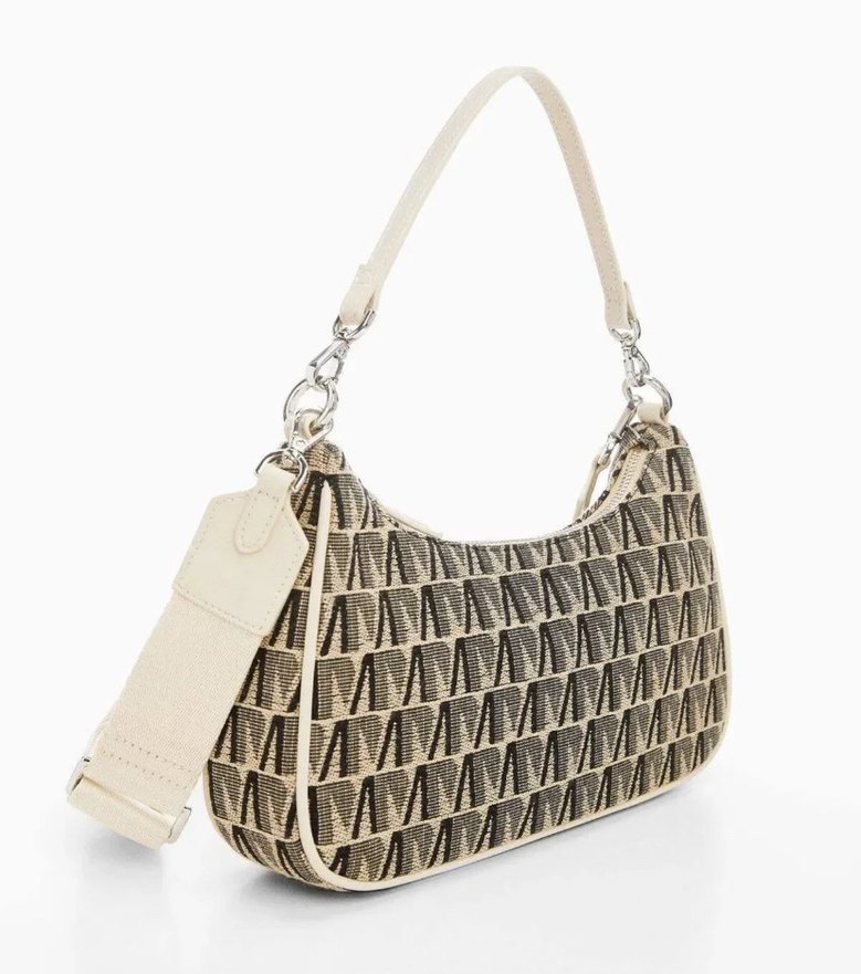 Sentetik kumaştan yapılmış, bej kadın çantası. Günlük kullanıma uygun, trend ve çağdaş bir aksesuar.