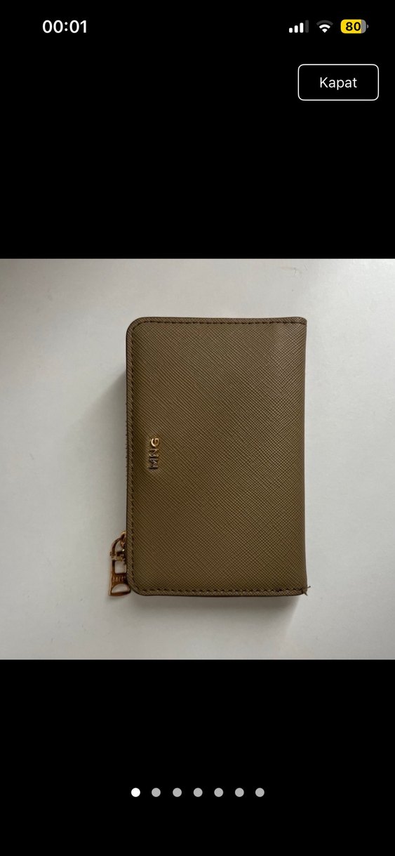 Haki deri kadın cüzdanı, fermuarlı kapanışa sahip, klasik şıklık ve sokak modasını bir araya getirir. Bende burdan aldım ama küçük geldi temiz durumda fermuarda renk değişimi var hafif