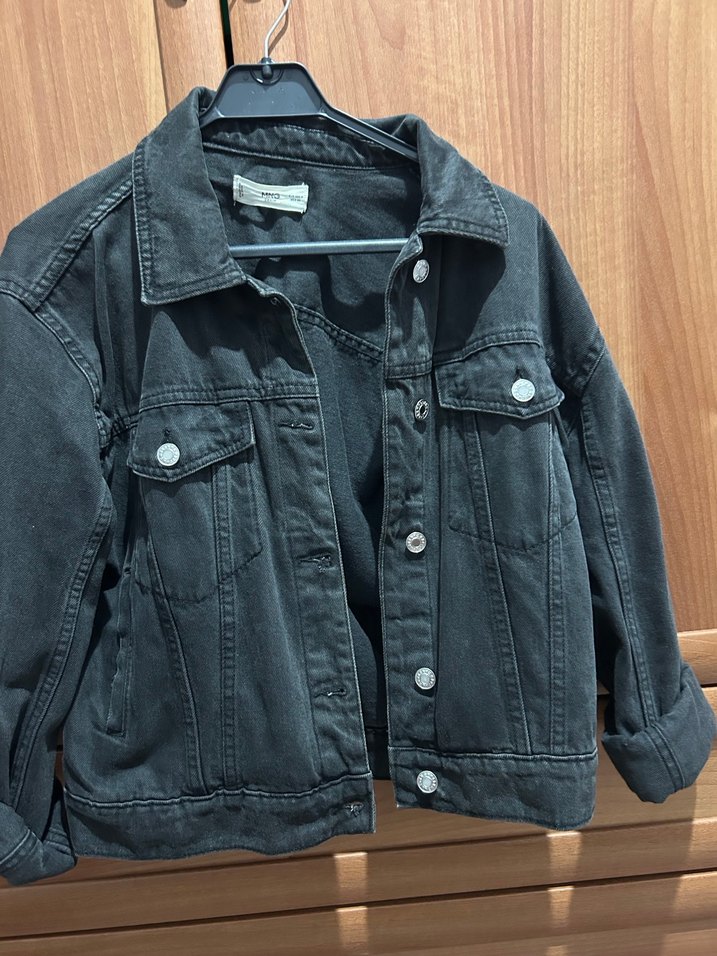 Gri renkli kadın denim ceket, düğmeli kapama ve kesik yakaya sahiptir. Salaş kesimi, uzun kollu ve günlük kullanıma uygun rahat sokak stili sunar.